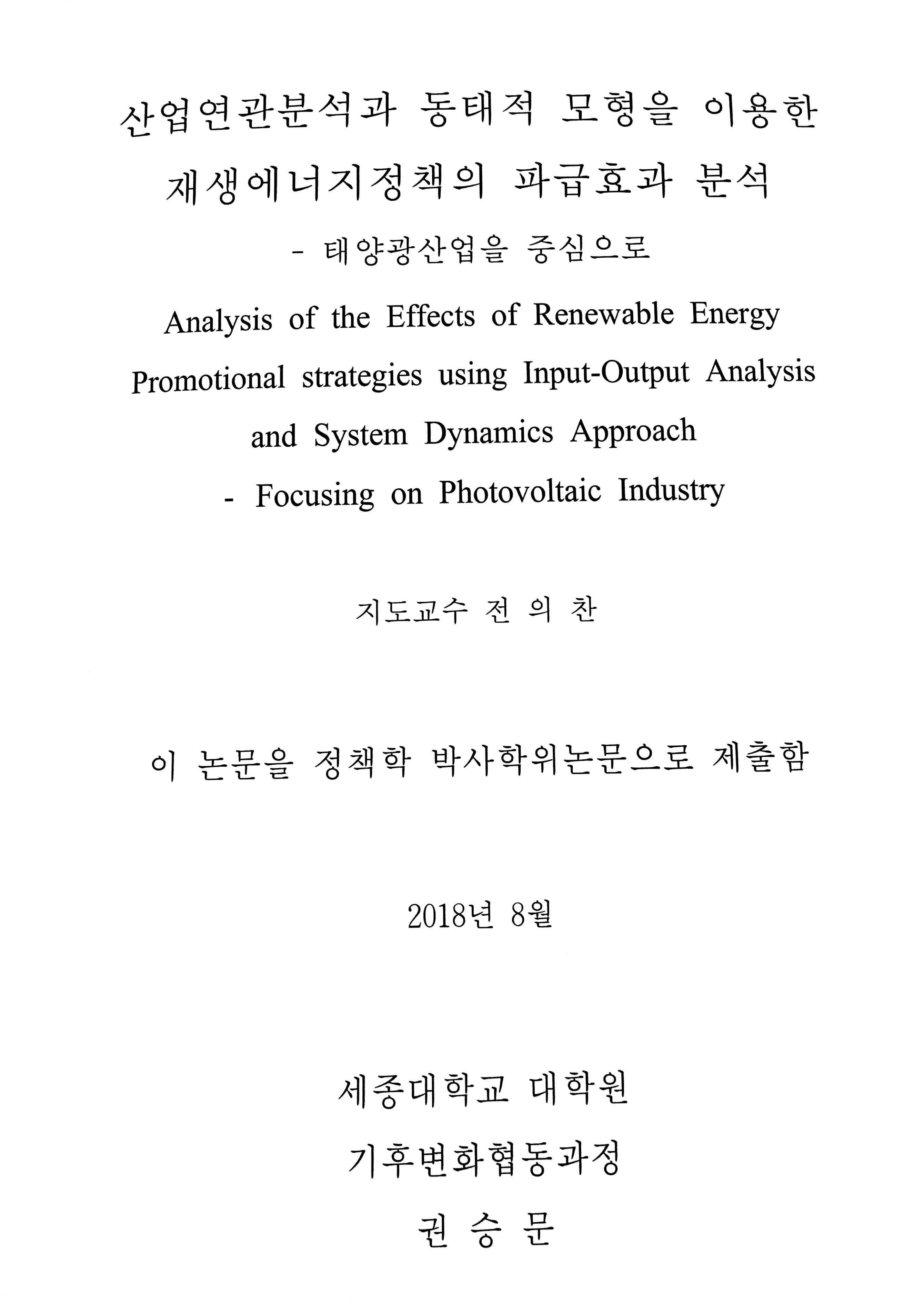 Analysis of the Effects of Renewable Energy Promotional strategies using Input-Output Analysis and System Dynamics Approach - Focusing on Photovoltaic Industry