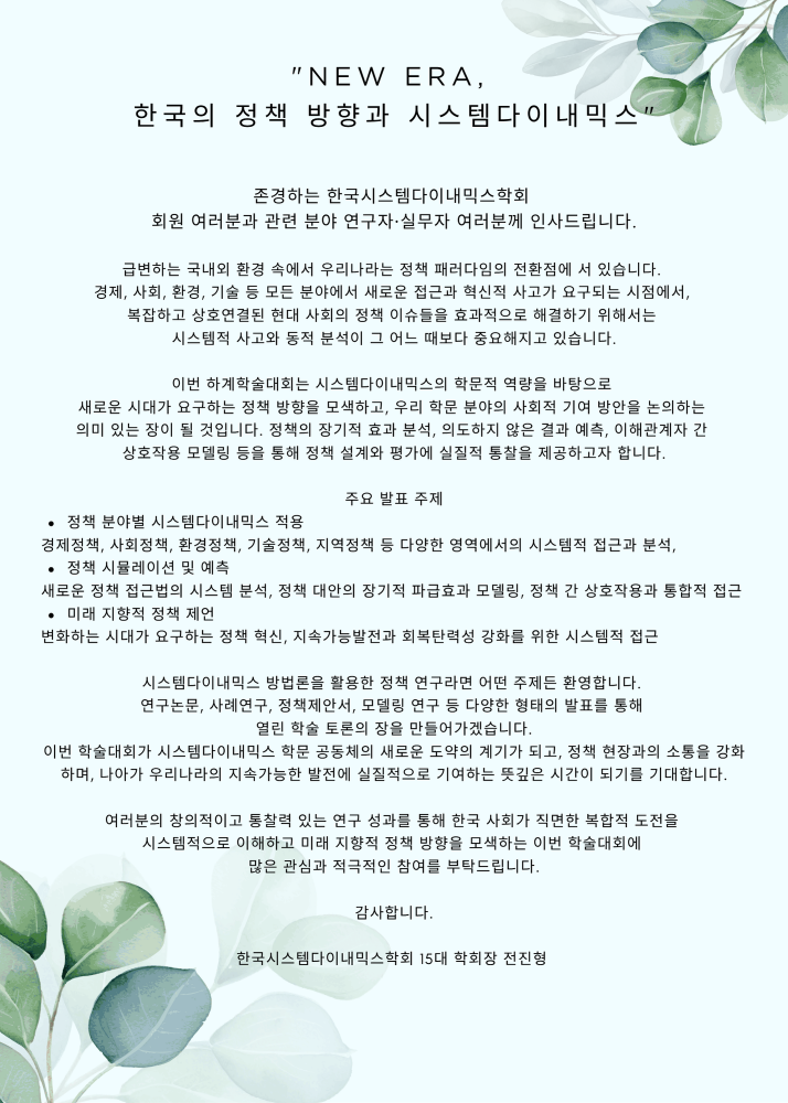 [한국시스템다이내믹스학회] 2026년 동계학술대회(2월 27일) 발표 논문 모집 안내..
