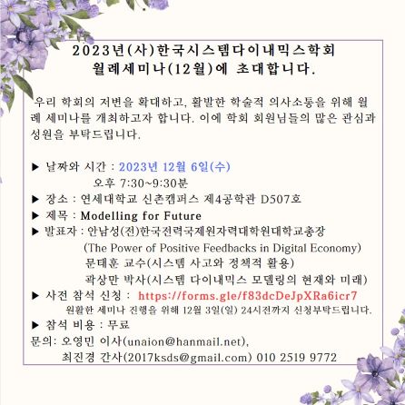 [한국시스템다이내믹스학회] 2026년 동계학술대회(2월 27일)에 초대합니다...